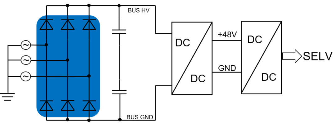 開關電源整機降成本帶來的附贈產物,如圖8所示,以前傳統(tǒng)的給SELV電路供電是采用兩級變換器的方式,先通過一級DC-DC變換器將BUS母線降低為48V或者更低,再通過一級隔離DC-DC變換器給SELV電路供電,因為第二級隔離DC-DC變換器之間的壓差不可能超過750V閾值,所以,局部放電測試就無需再做,只需要滿足對應的加強絕緣要求即可。