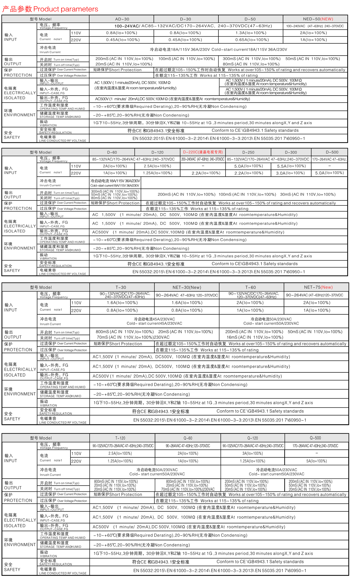 通用AC輸入電源 有短路、過載、過熱保護 內置EMI濾波器、紋波極小 100%滿負荷燒機測試